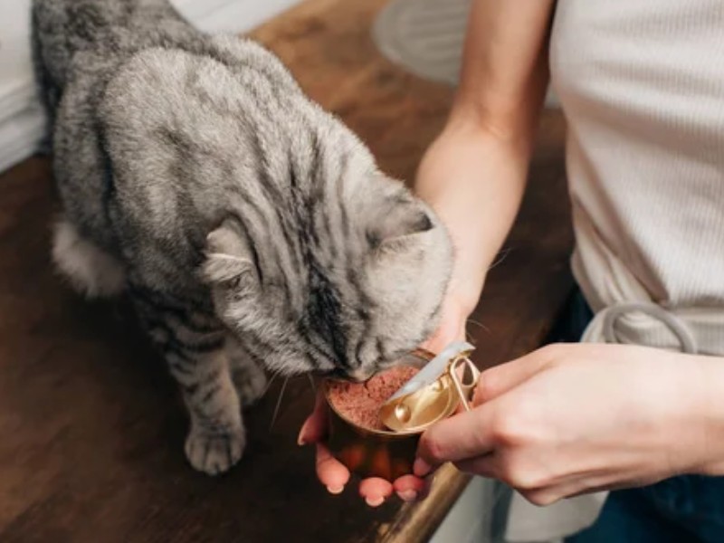 Pri prehranjevanju mačke morate poskrbeti, da ohranite naravno sestavo mačje hrane. To pomeni, da mora biti na vrhu seznama meso. Tega lahko mački ponudite v sveži obliki ali pa kot suh izdelek. Pri izbiri suhe mačje hrane morate paziti na zapis na embalaži. Čeprav bo na njej denimo pisalo, da gre za sveže meso, je lahko delež posušenega mesa v končnem izdelku precej nižji.
